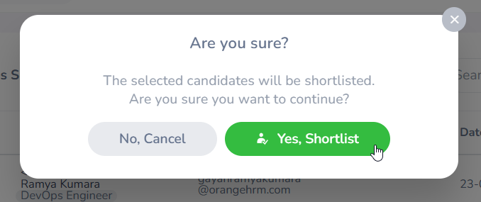 Step 4 - After selecting an action, a confirmation prompt may appear. Review the details and confirm the action to apply it to the selected candidates.