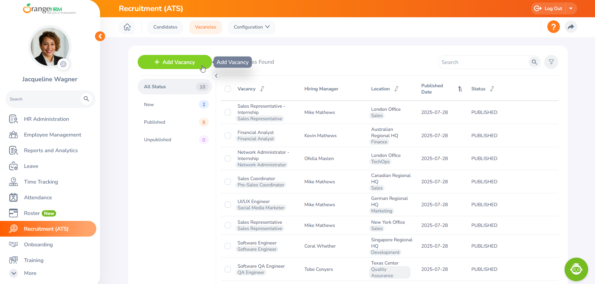The name of the Hiring Manager is relevant to the job vacancy. One vacancy can have multiple hiring managers. |