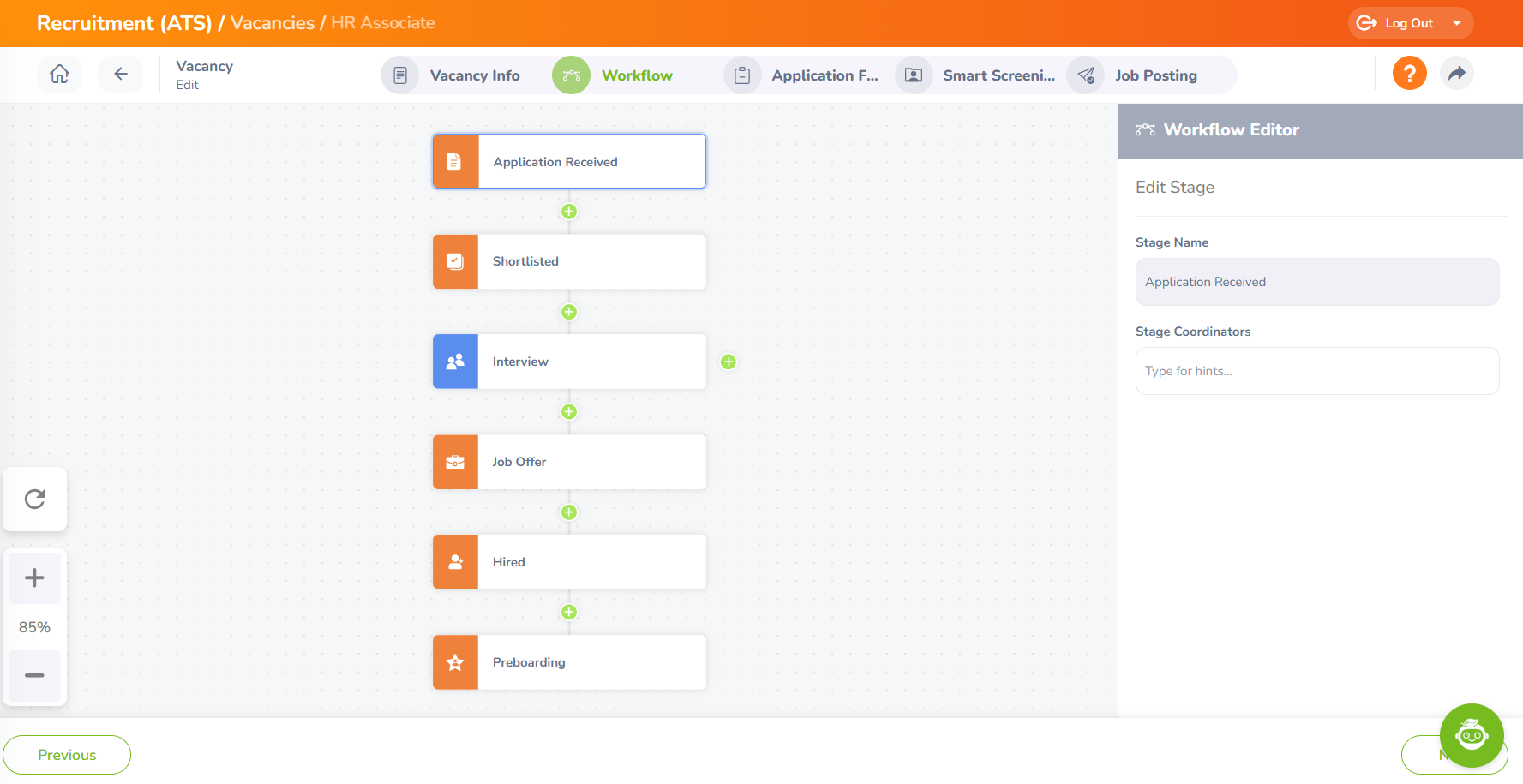 Step 3 - Once you have completed filling in all the above details related to the vacancy, click Save and Continue. Then, you will be redirected to the Workflow screen.