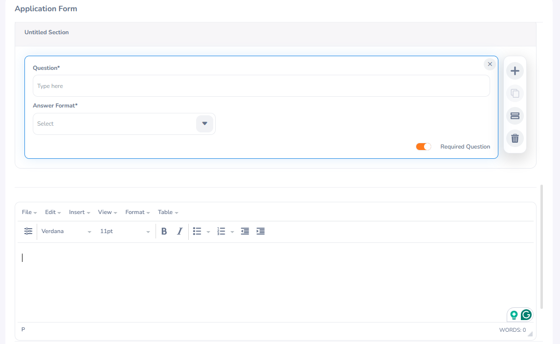 You can also mark a question as mandatory by enabling the "Required Question" toggle. Use the side panel located on the right side of the screen to add, edit, or delete sections in the application form.