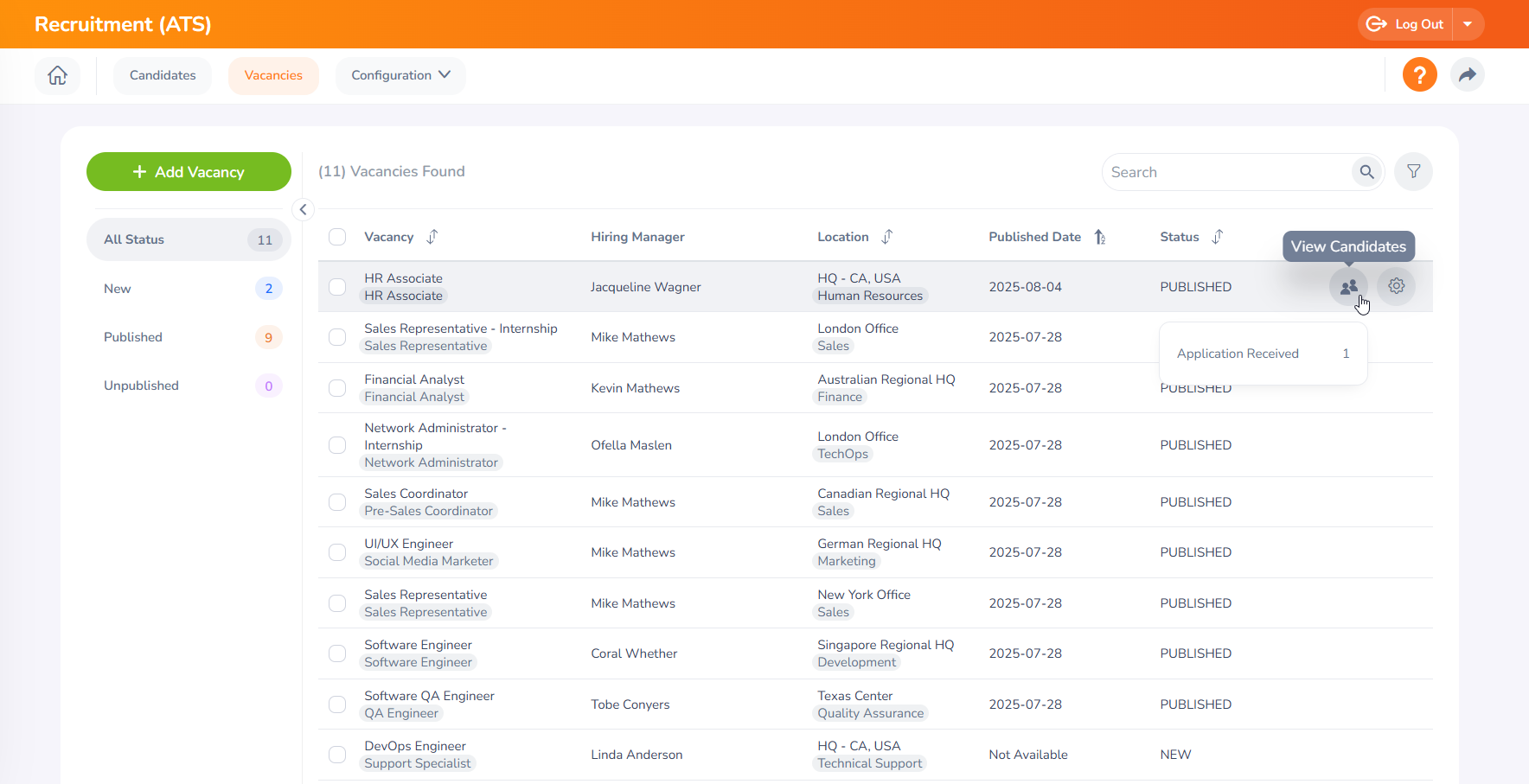 Step 16 - Once the candidates have applied for the vacancies, the user can view the candidates who have applied for each vacancy by clicking the "View Candidate" button in each vacancy.