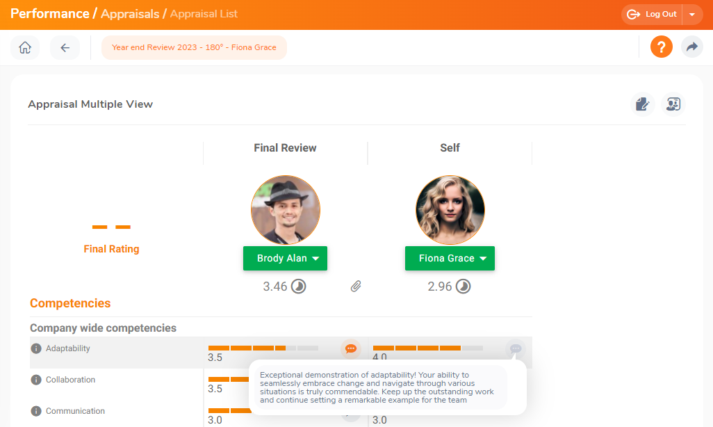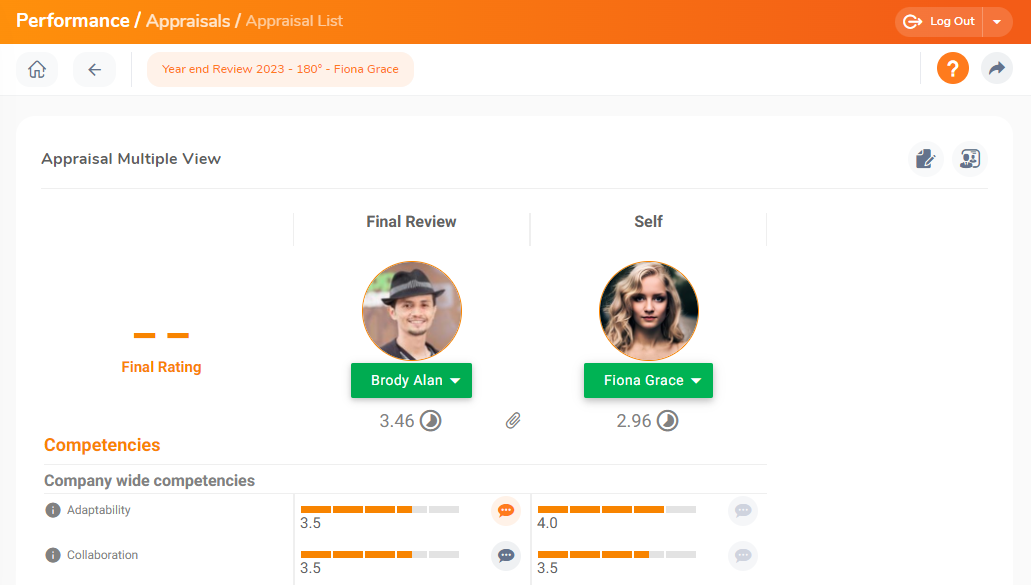 If any feedback or comments have been given by the evaluators in the performance appraisal multiple views, the comment bubble/link in the multiple views of the appraisal clearly distinguishes empty comments from filled comments.