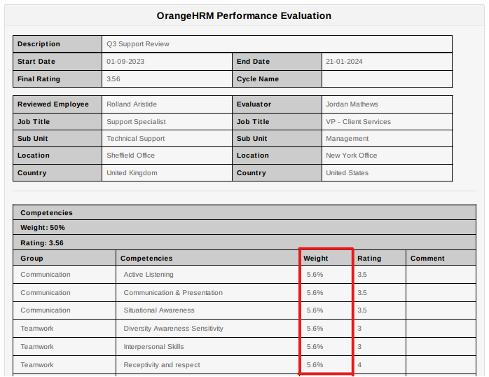 HR Admins can the weights to competencies, goals, and sections are visible or not. In the appraisal form design screen, we can enable or disable displaying the weight by clicking the ‘Show Section and Rated Item Weights on Appraisal’ enable button.