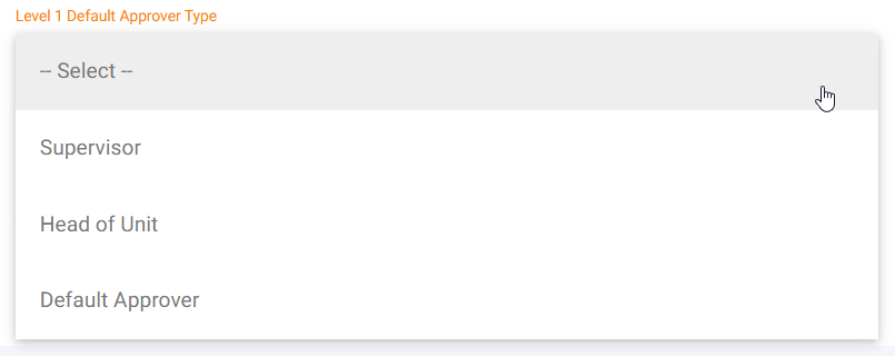 | Level 1 Default Approver Type | Select from the dropdown |