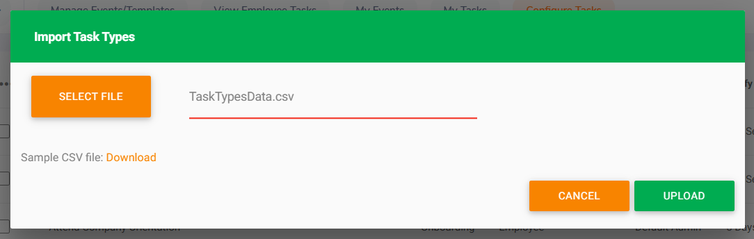We have introduced a new feature allowing admins to add task types in bulk to the system. This feature will allow the admins to add many task types at once eliminating time consumption. Simply by adding a CSV file with the task type details you can add many task types at once.