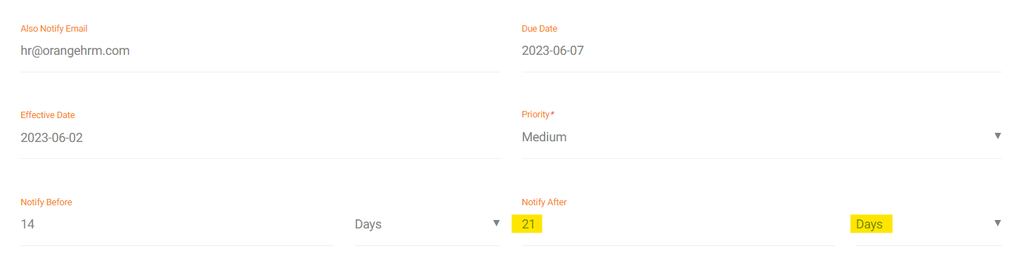 The system now has the capability to send notifications to task owners and employees added to the tasks after the due date. This feature will come in handy when task owners or employees added to the task needed to send any documents or take action after the due date. Simply by adding after how many days or hours you need to be notified in the ’notify after’ field you can get the notification as you define.