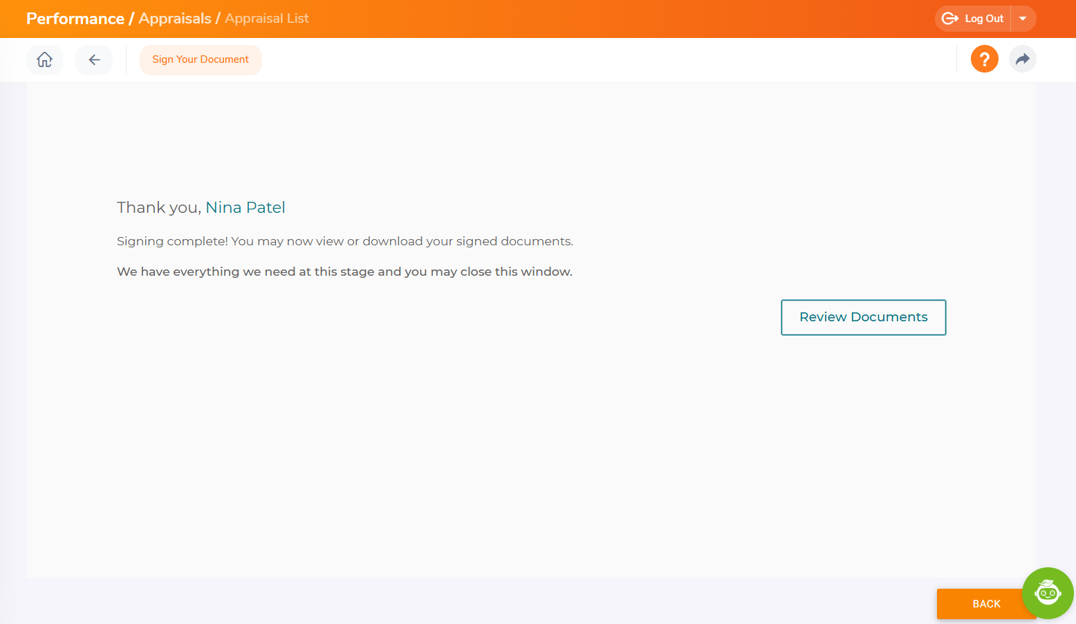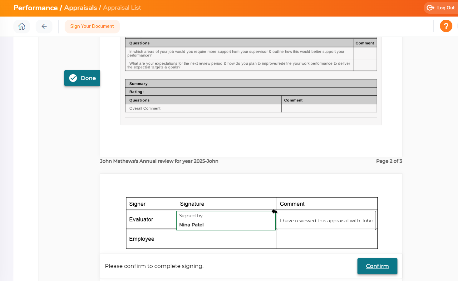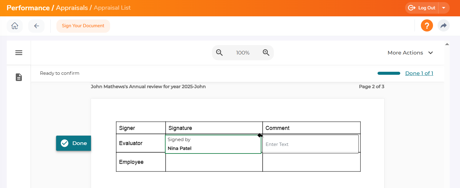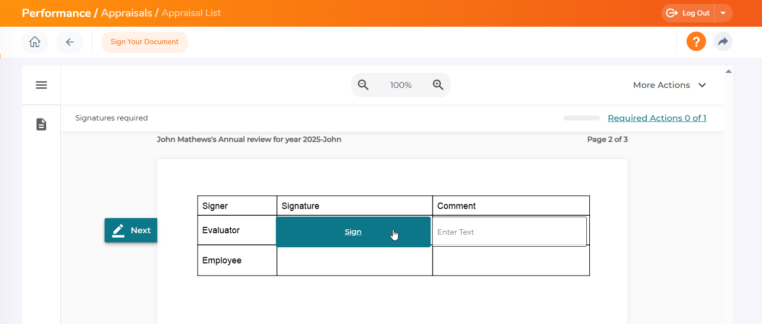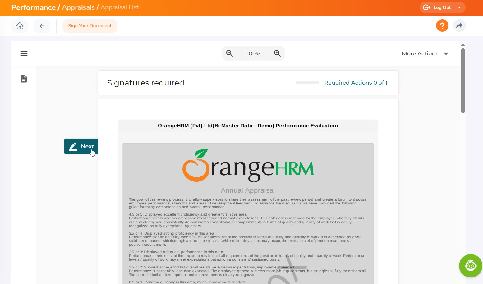 OrangeHRM can be integrated with Onespan as an e-signature provider. With the integration of e-signature, the appraiser can now electronically sign the appraisal that they have submitted.