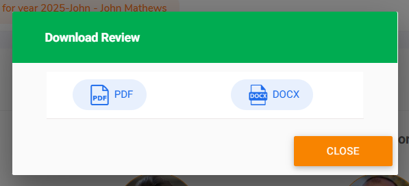 Step 9 - To download the appraisal review, go back, click on the dropdown menu, and select the Download button. You will then have two options: download as PDF or DOC. Choose your preferred format.