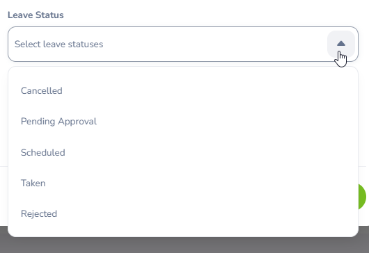 | Leave Status | Select the calendar to show leave requests with specific statuses, such as Pending Approval, Scheduled, Taken, Rejected, or Cancelled. You can select one or multiple statuses. | |