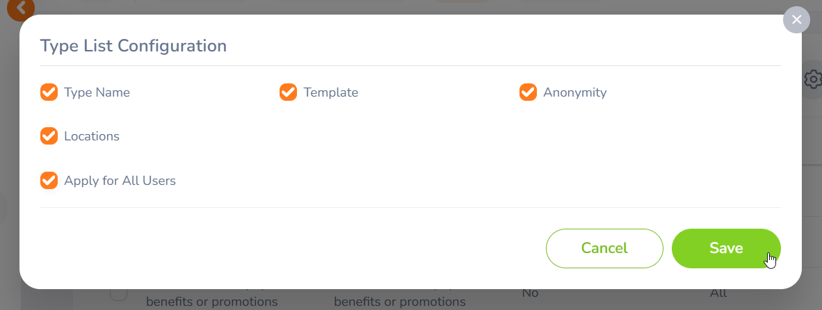 Step 07 - To configure the types list, click on the "Configure" button. Once you click the button, the "Type List Configuration" screen will appear.