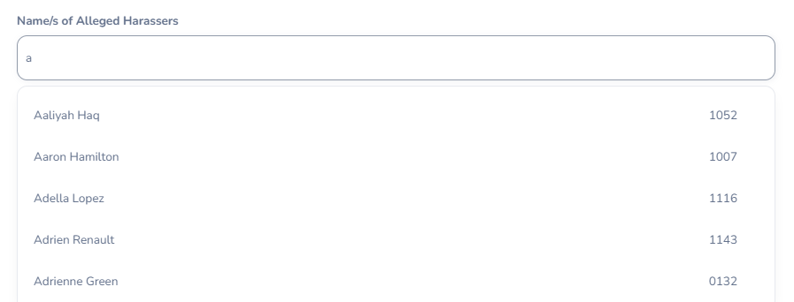 | Name/s of Individuals Involved | Type the name to search for the employee/s involved in this case. |