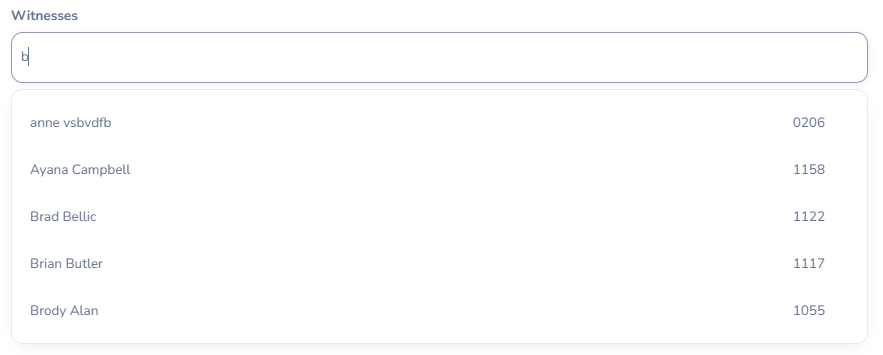 | Witnesses | Type the name of the employee you want to assign as a witness in the search field and select the employee. |