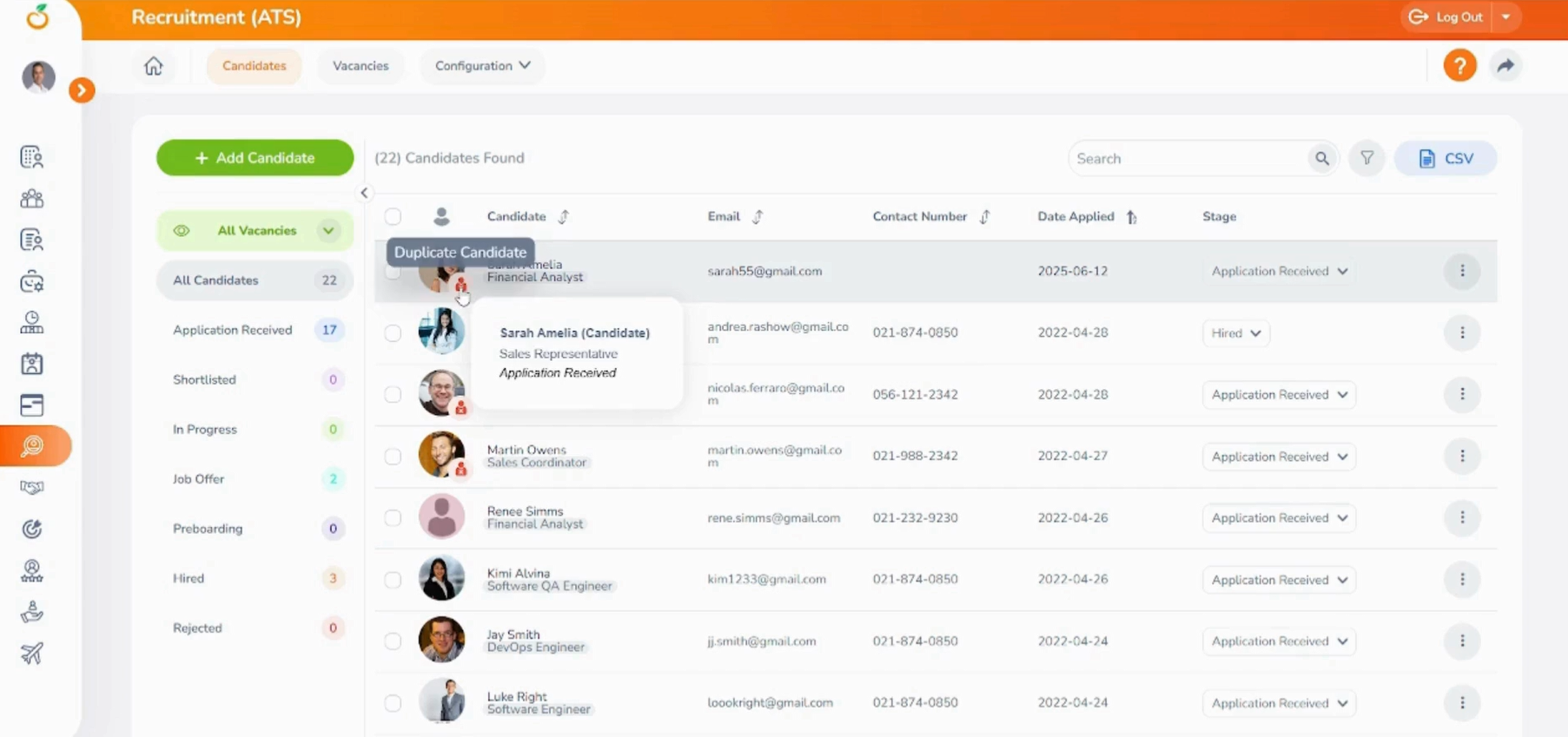 OrangeHRM now makes it easier than ever to recognize candidates who are former employees or previous applicants. With our enhanced detection feature, recruiters gain instant visibility into a candidate’s history using email-based identification—eliminating duplicate screening and streamlining hiring decisions. This intelligent update not only reduces manual effort but also helps uncover valuable rehire opportunities by providing clear historical context right from the Candidate List and Profile views.