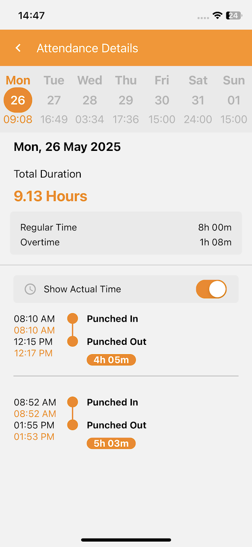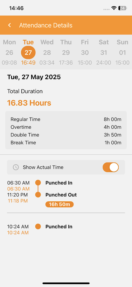 View Actual Punch-In/Out Times