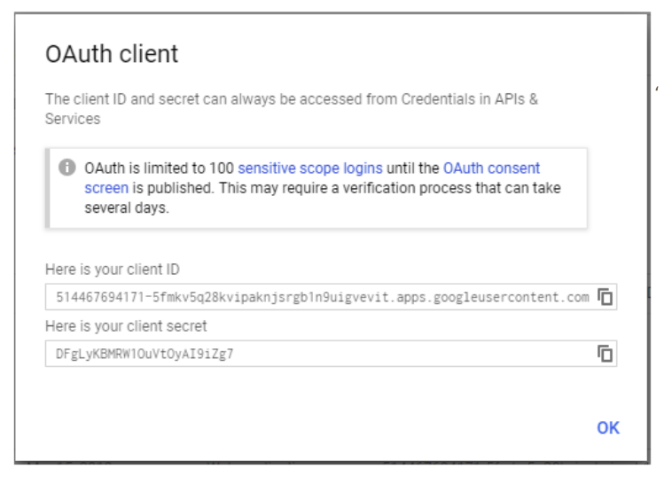 • A pop-up “OAuth client “ will appear.