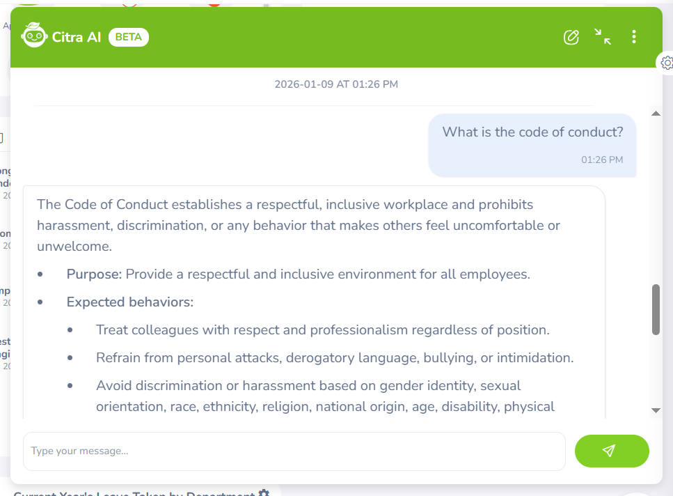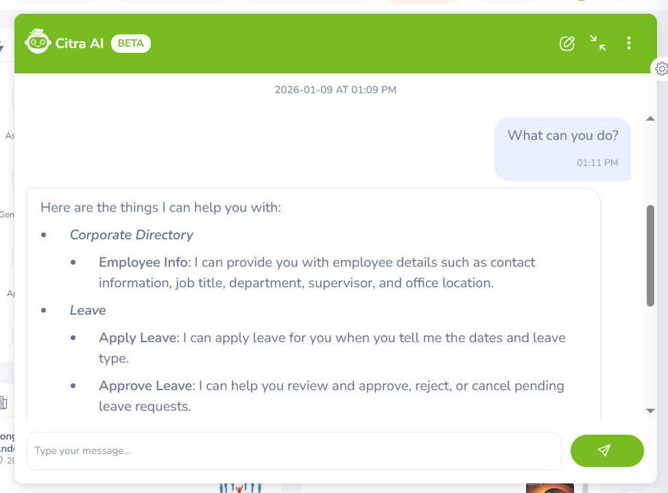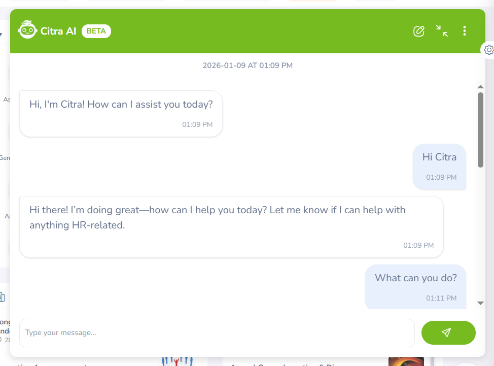 With Citra AI, HR processes become faster, easier, and more engaging, empowering employees while reducing administrative workload.