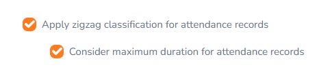 Step 05 - Once you enable the "Apply zigzag classification for attendance records," the "Consider maximum duration for attendance records" option will appear.