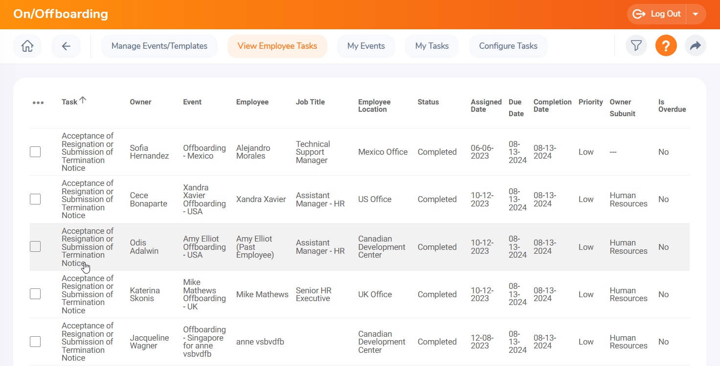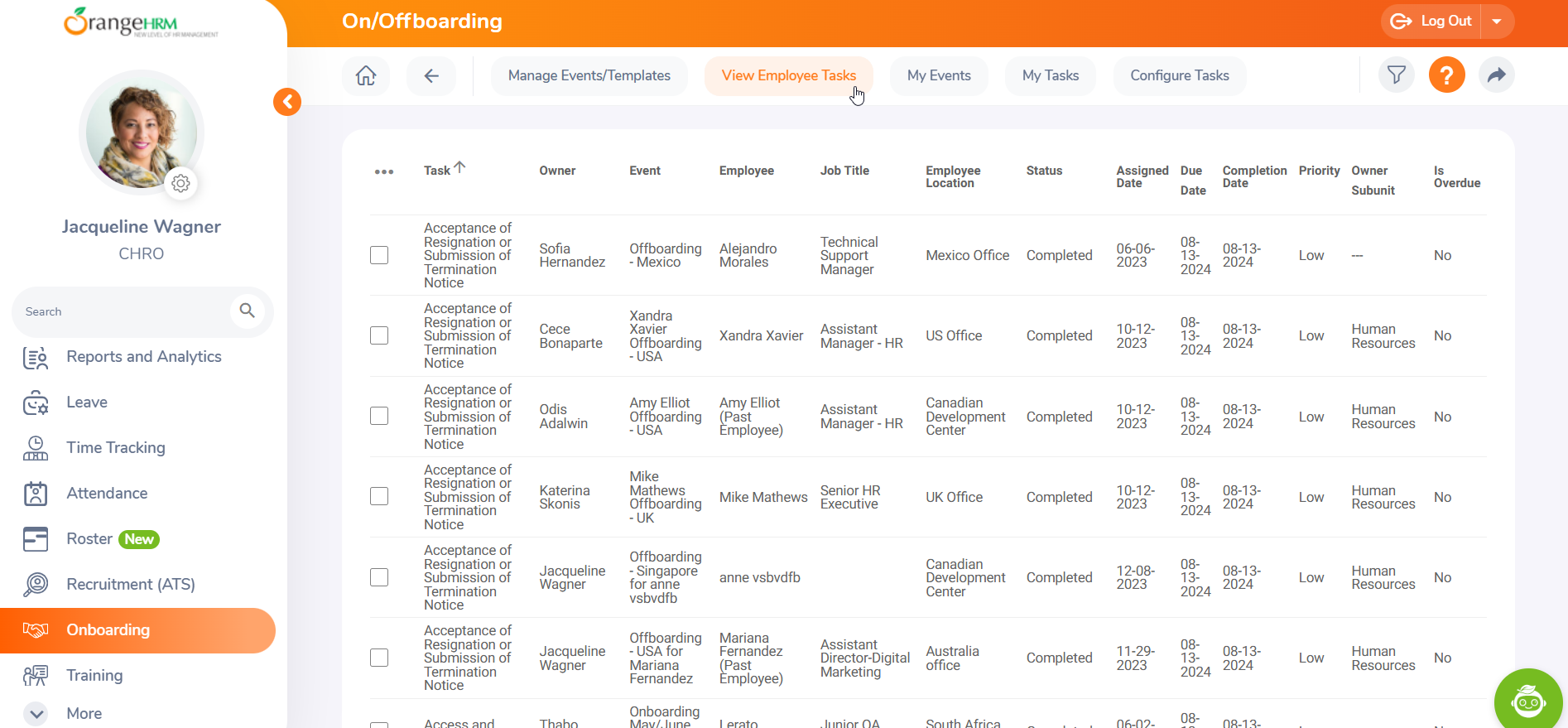 Step 01 - Navigate to the On/Offboarding module and go to the View Employee Tasks.