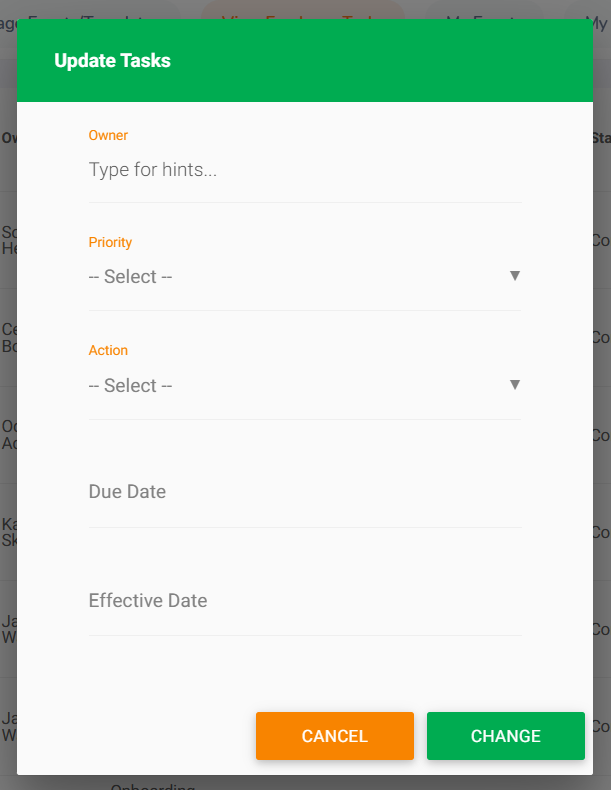 Step 06 - Once clicked, the Update Tasks window will appear. Update the fields that you need to change and click on the "Change" button to apply the changes.