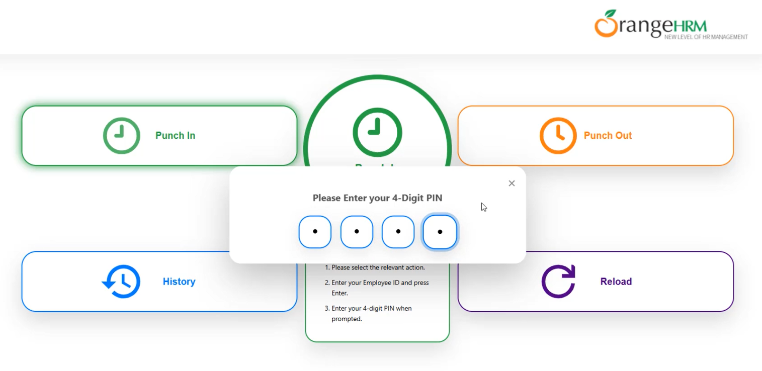 Step 03 - After entering your Employee ID, a pop-up window will appear. In this window, enter your 4-Digit PIN to complete the Punch-In/Punch-Out process.