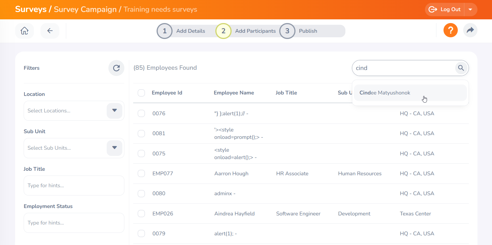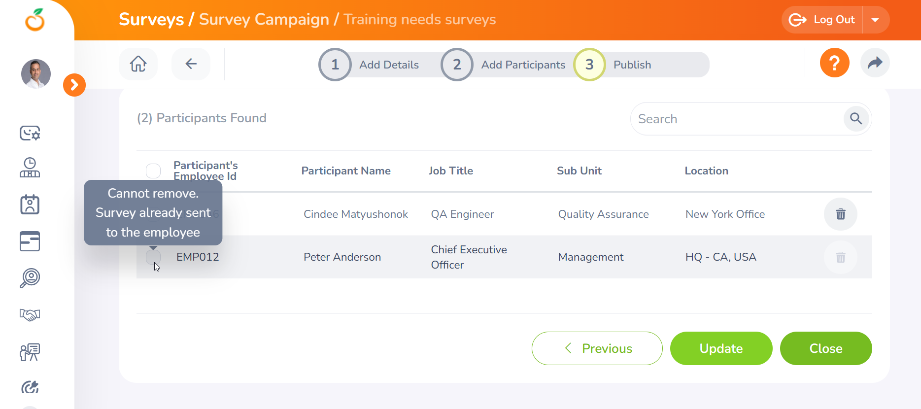 The selected employees will now be added to the ongoing survey campaign, and they will be notified via email.