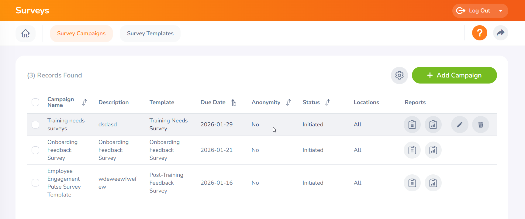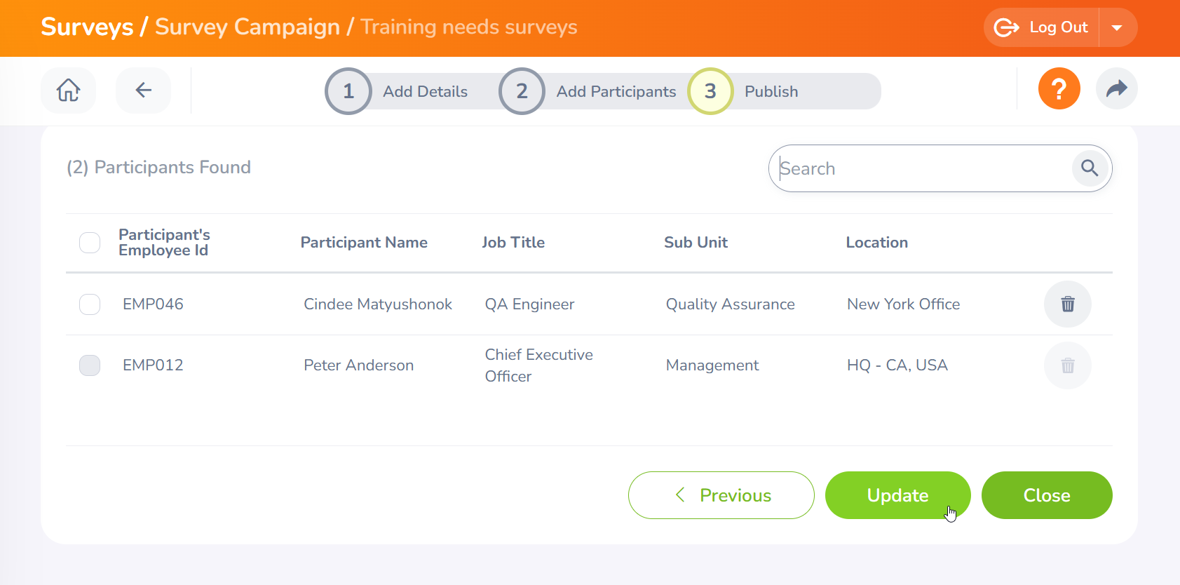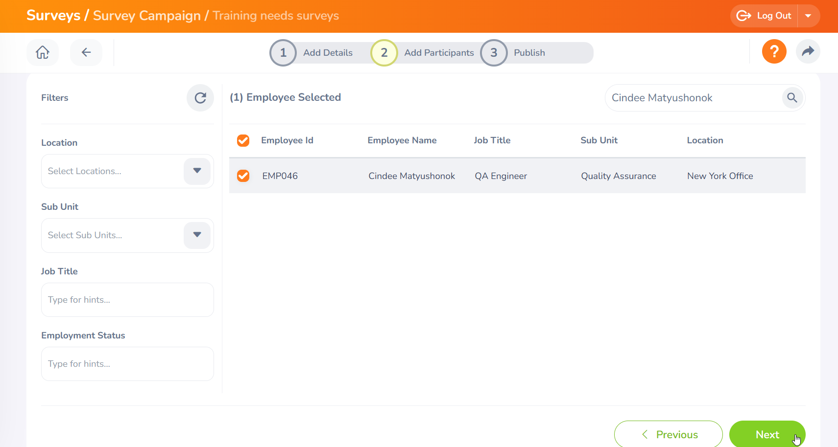 Step 02 - Select the Ongoing (initiated) Survey Campaign that you want to add employees.