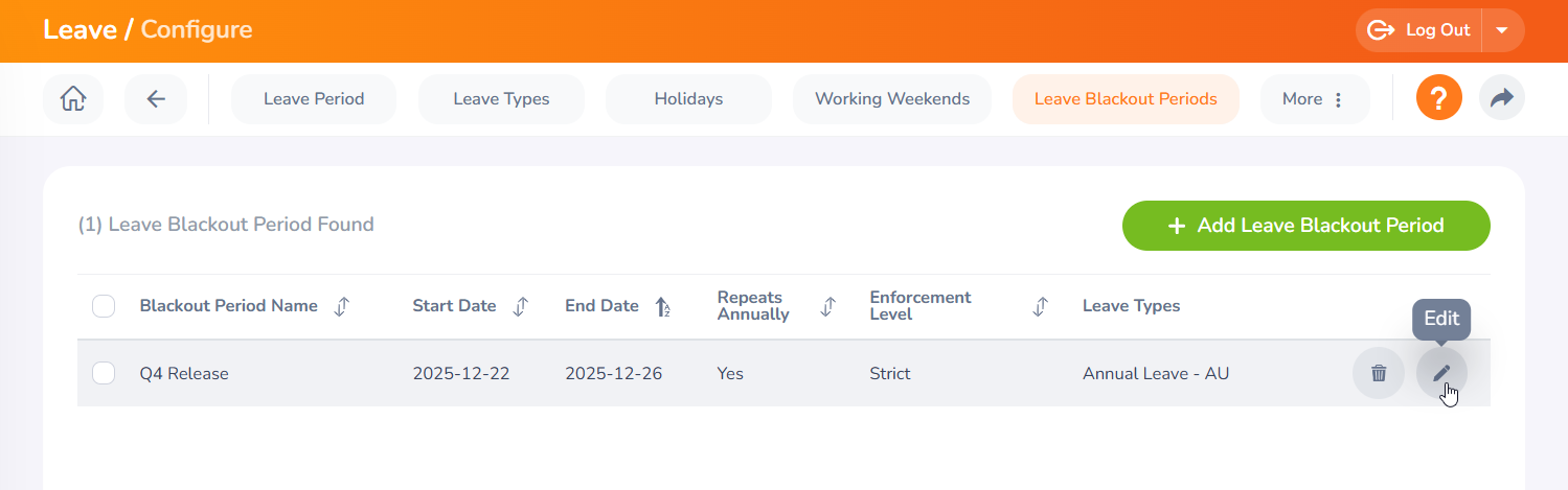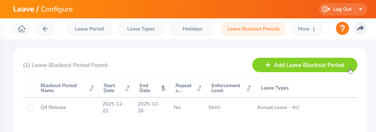 - Employees will see a clear notification or restriction when attempting to apply for leave during a blackout period.