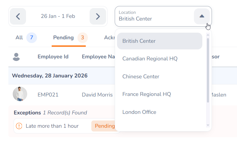 Attendance Exceptions Management provides supervisors with a centralized and efficient way to monitor and manage attendance-related issues such as late arrivals, early departures, missing punches, excessive work hours, and other deviations from expected work patterns. With automated detection, clear visibility, and consolidated exception records, supervisors can quickly review attendance activities, track patterns across teams, and make informed, proactive decisions. This enhancement streamlines attendance oversight, improves accuracy, and supports more effective workforce management.