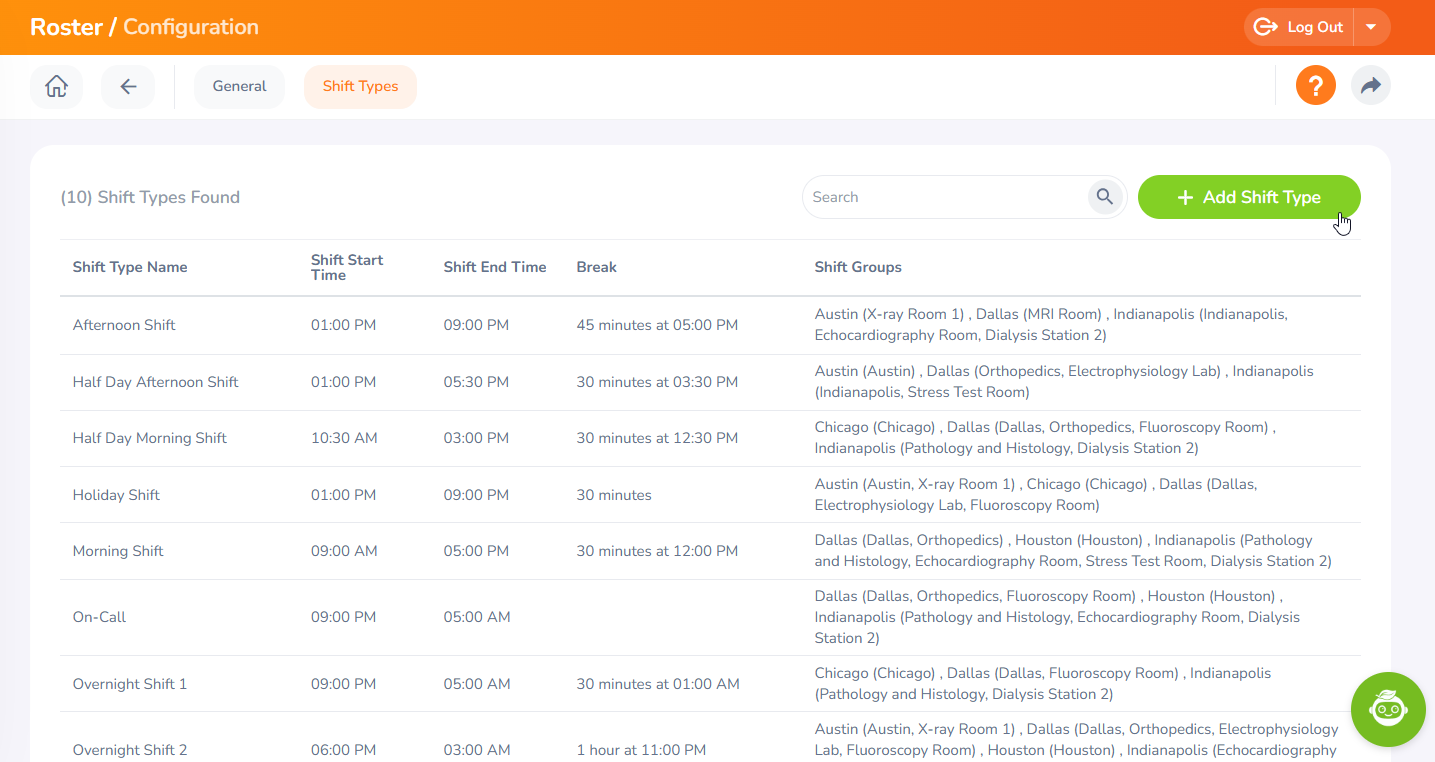 Step 02 - This will open the section where you can define and manage all the shift types. Click on the "Add Shift Type" button to add a new shift type.