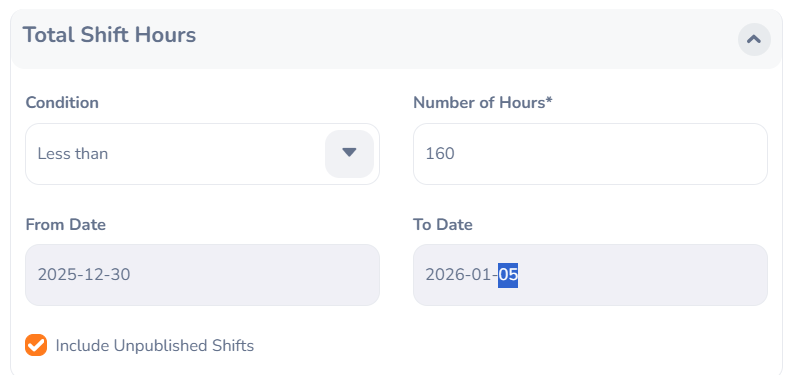 - Total Shift Hours - The total number of hours an employee is scheduled to work, as shown in their published roster. It does not include leave or time off.