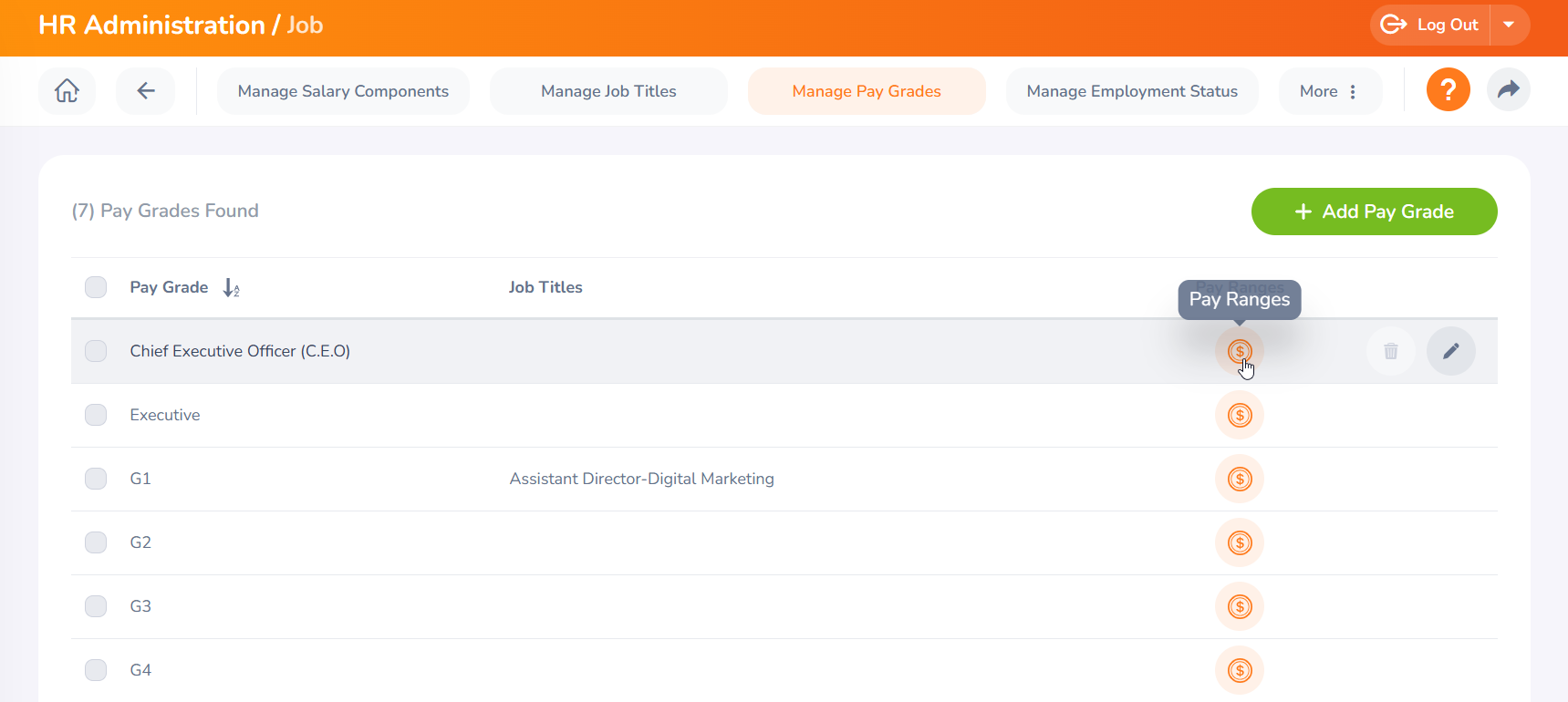 Step 01 - To edit a pay grade, click the ‘Edit’ button relevant to the new pay grade you created.