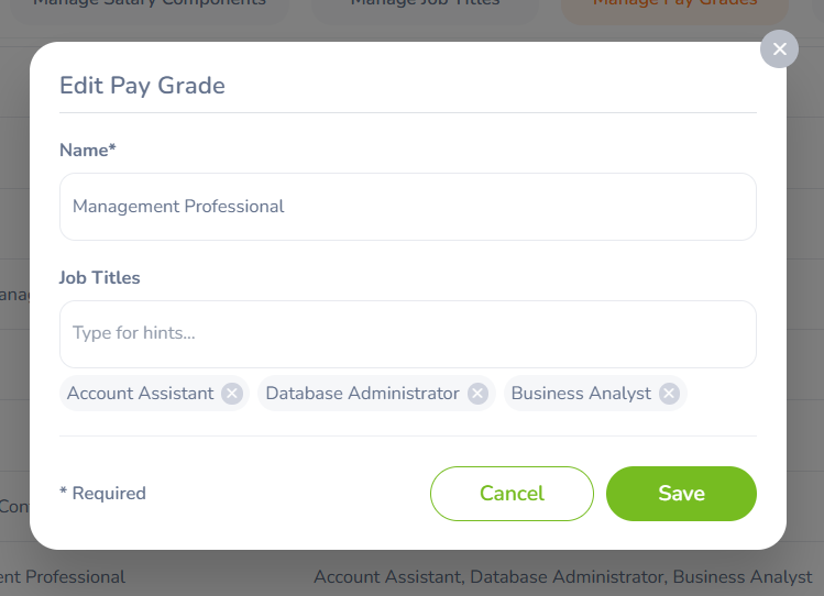 Step 5 - Click ‘ Save’. The new Pay Grade will be added to the list.