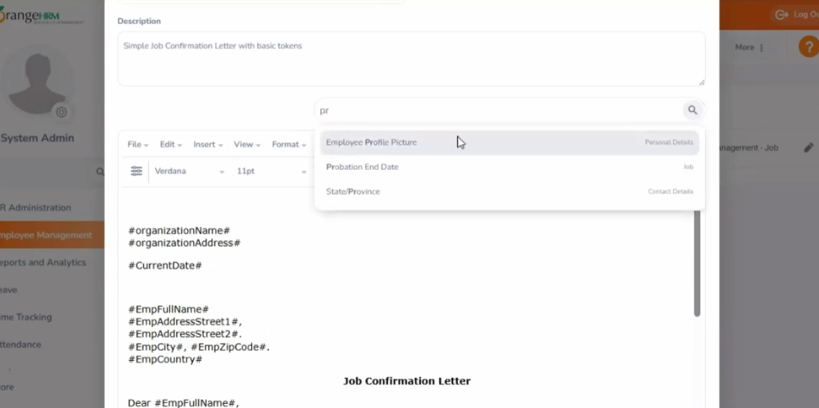Step 3 - Now users can use a document token that allows embedding employee profile pictures directly into generated documents, such as PIM letters, emails.